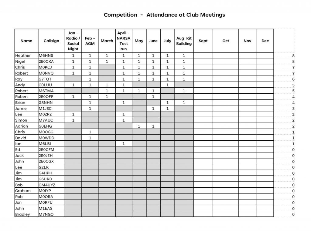 We will be running our club attendance competition again this year. Previous winners are at the bottom of the page. Keep a watch on the table below to see where you stand in the table. The more you attend the more you have a chance of winning a prize.