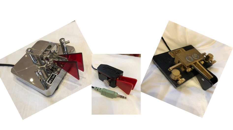 Question 1) Name three common types of morse code keys. : Answer is Straight key (Up and Down Key); paddle; bug key.
